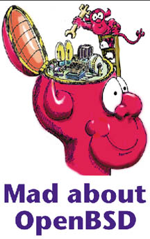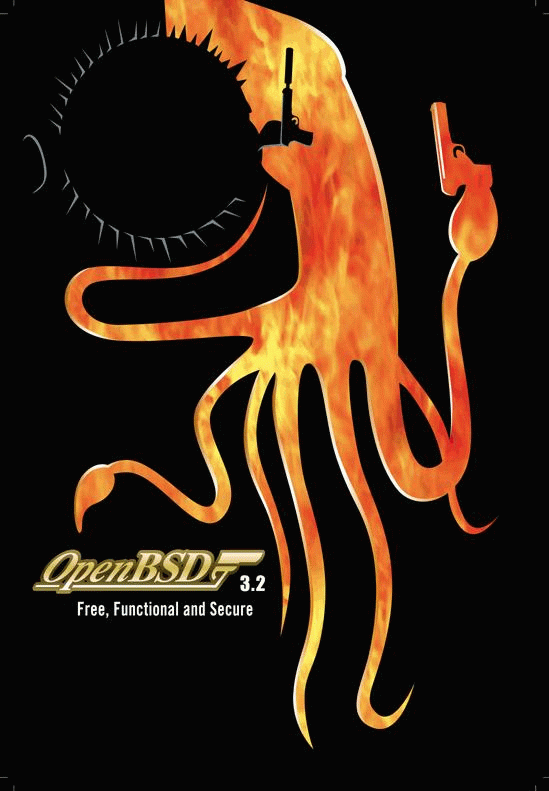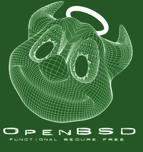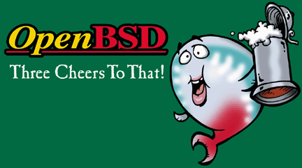"OpenBSD 3.8" on a brown shirt.