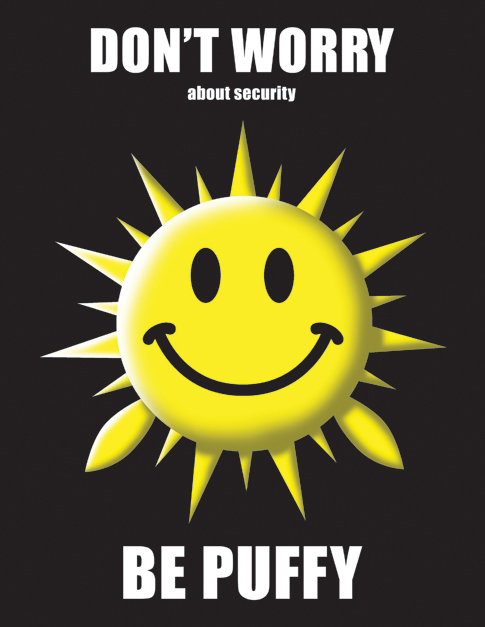 A redundant firewall setup, showing how Puffy and CARP coordinate firewall failover. "Redundancy must be free... you see?"